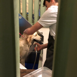 Apart from being the Managing Director, Donna is also one of the professional grooming team, offering grooming services from the groom room for a very specific group of dogs. Donna specialises in retrievers of all breeds: Labradors, Goldens, Flatcoats, Curly Coats, Duck Tollers, and even retriever mixes as long as they have a hair coat and not a fleece or wool coat. Donna’s client list features dogs with special needs due to age, disability or temperament, guide dogs, other service and assistance dogs and lots and lots of beloved pets.